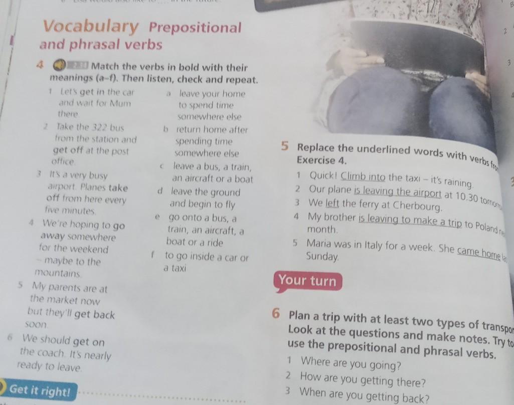 ЕХ 5. Replace the underlined words with verbs from exercise 4. 1)Quick! Climb into the taxi-it's raning. и т.д