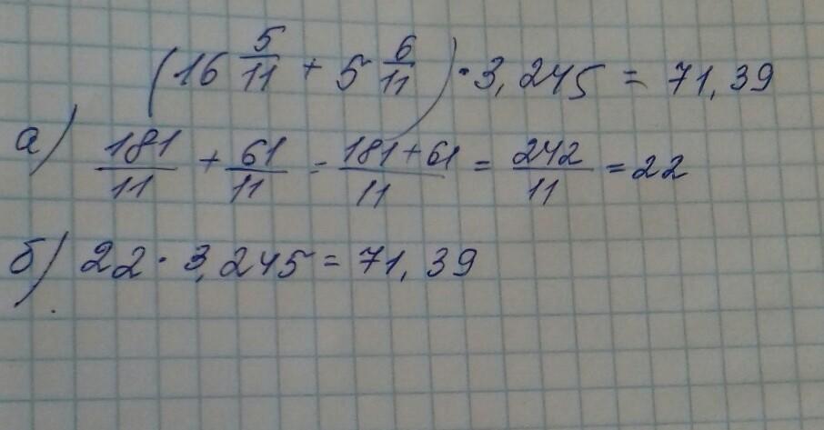 добуток суми чисел 16 5/11 і 5 6/11 та числа 3,245