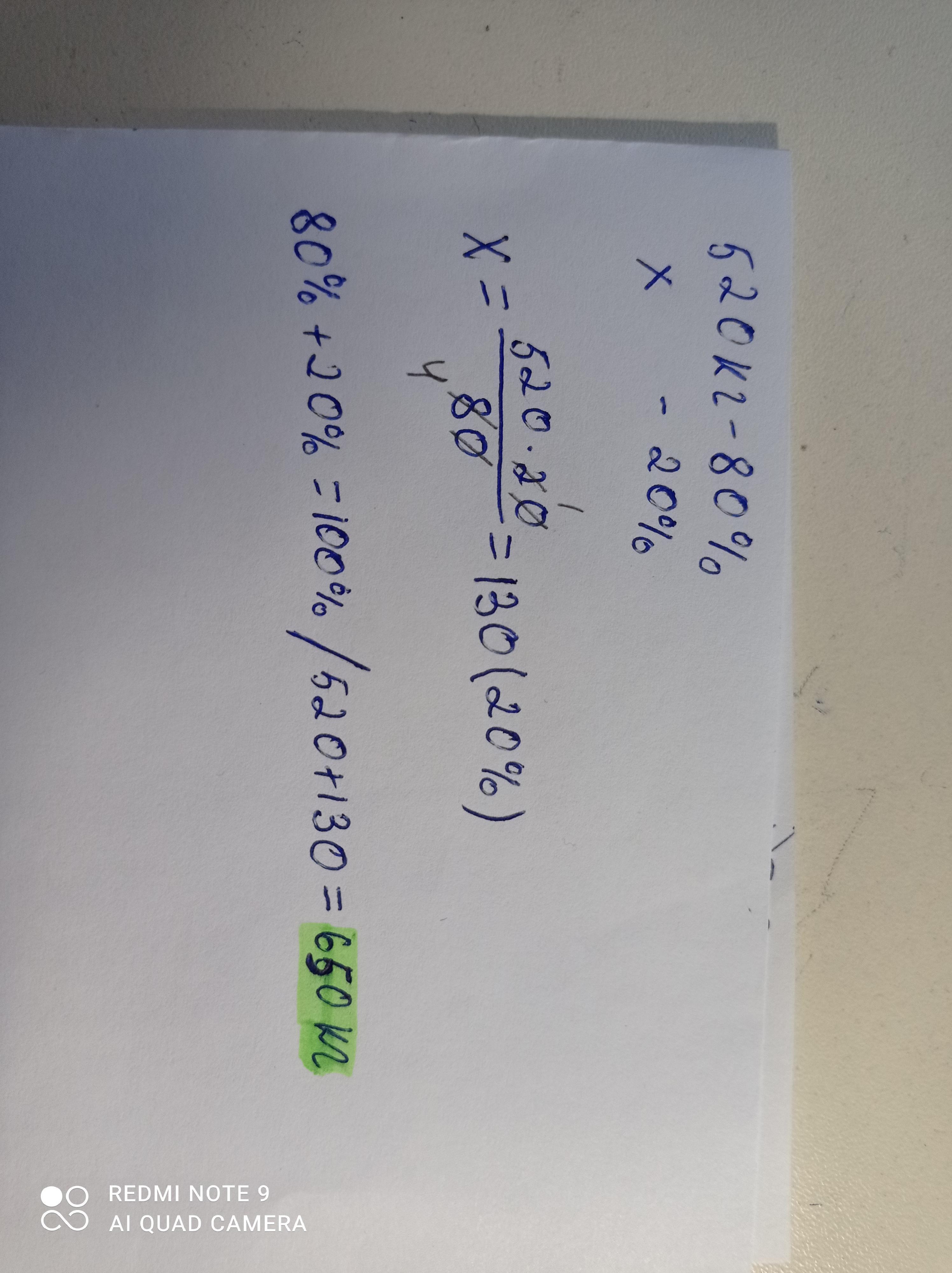в магазине в 1 день продали 520кг овощей.Сколько всего овощей было в магазине, если осталось 20% овощей?