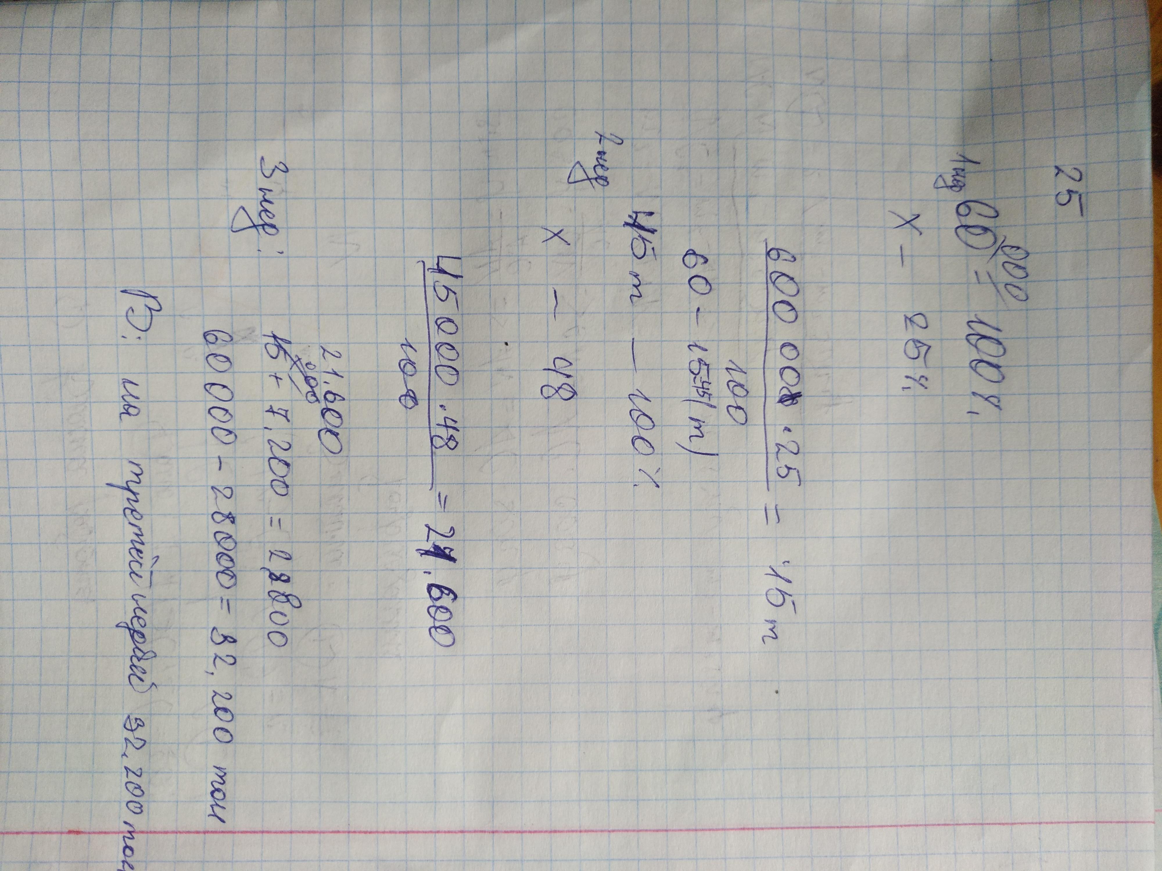 на топливный склад прибыло 25 вагонов угля по 60т в каждом.В первую неделю отпустили 25% угля,поступившего на склад,во вторую- 48% остатка,а в третью -остывшийся уголь.Сколько тонн угля отпустили за третью неделю?