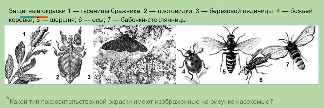 Помогите с биологией. Какой тип покровительственной окраски имеют изображенные на рисунке насекомые