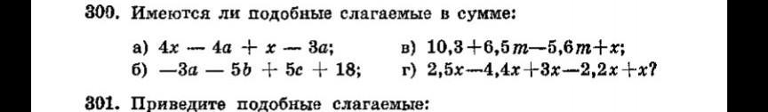 300. Подобные слагаемые-это слагаемые, имеющие одинаковую буквенную часть.