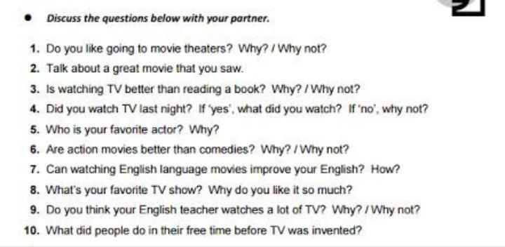 7. Yes. When you are watching a film with English language, you can improve your English because the actors in this film speaking English too.