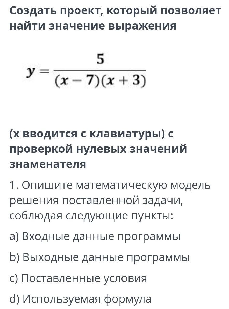 1. Опишите математическую модель решения поставленной задачи, соблюдая следующие пункты: