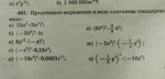 а) 25а⁴ * (3а³)² = 25а⁴ * 9а⁶ = 25*9а⁴⁺⁶ = 225а¹⁰;