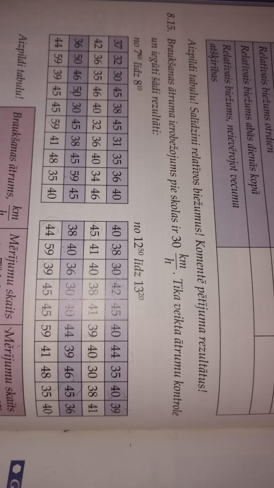 Ограничение скорости в школе составляет 30 км / ч. Контроль скорости проводился, и следующие результаты были получены с 7:00 до 8:00 и с 12:00 до 13:20. Помогите очень очень прошу пожалуйста выполнить упражнение 8.15