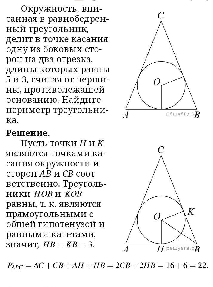 так как OH - радиус вписанной окружности, то он будет перпендикулярен стороне AB. Высота к стороне AB будет так же ей перпендикулярна, то есть, точка С будет общей и для высоты, и для радиуса. Высота, проведенная к основанию равнобедренного треугольника является медианой, знает она разделит сторону AB пополам