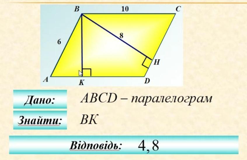 Объяснение: используем формулу площади паралелограмма