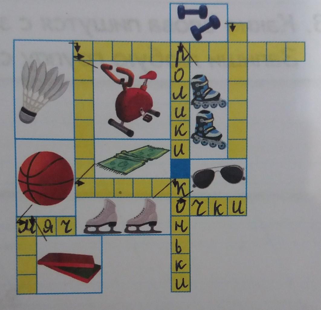 по вертикали: воланчик, гантели, маты (похоже на спортивные маты)
