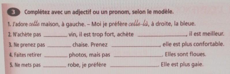 5. Ne mets pas cette robe, je préfère celle-là. Elle est plus gaie.