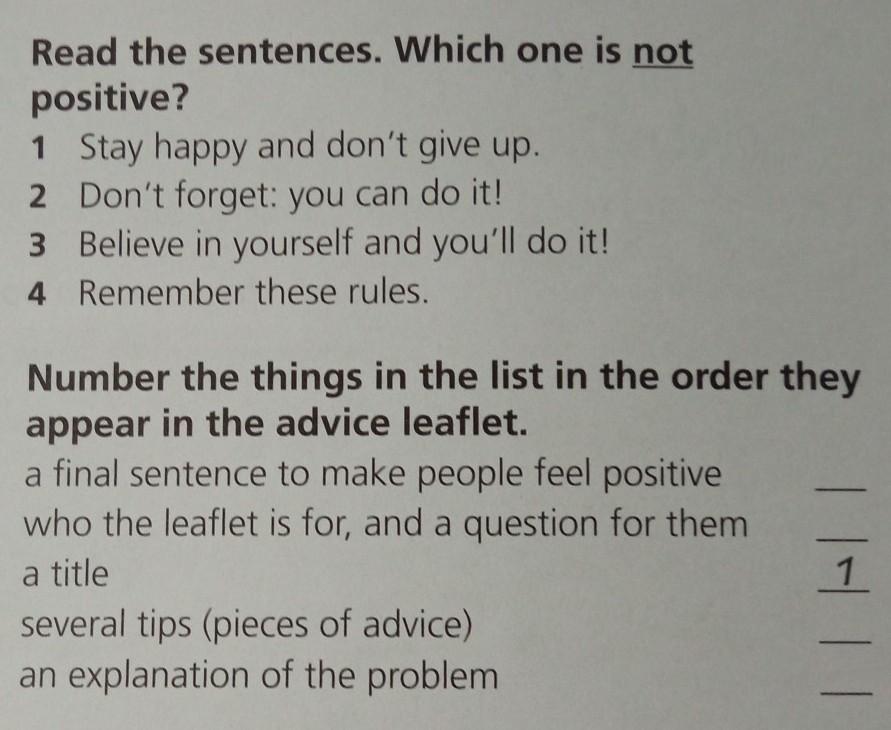 1 Read the sentences. Which one is NOT positive