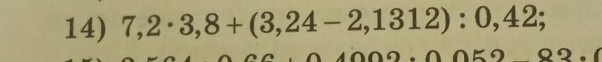 Покрокове пояснення: 7.2*3.8+(3,24-2,1312)/0,42 = 7.2*3.8+(1,1088)/0,42 = 27,36+(1,1088)/0,42 = 27,36+2,64 = 30