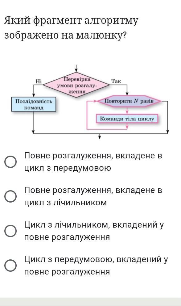 Ответ: Цикл з лічильником, вкладений у повне розгалуження