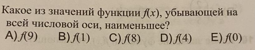 Поскольку функция убывающая, то чем больше значение аргумента x, тем меньше значение функции f(x)