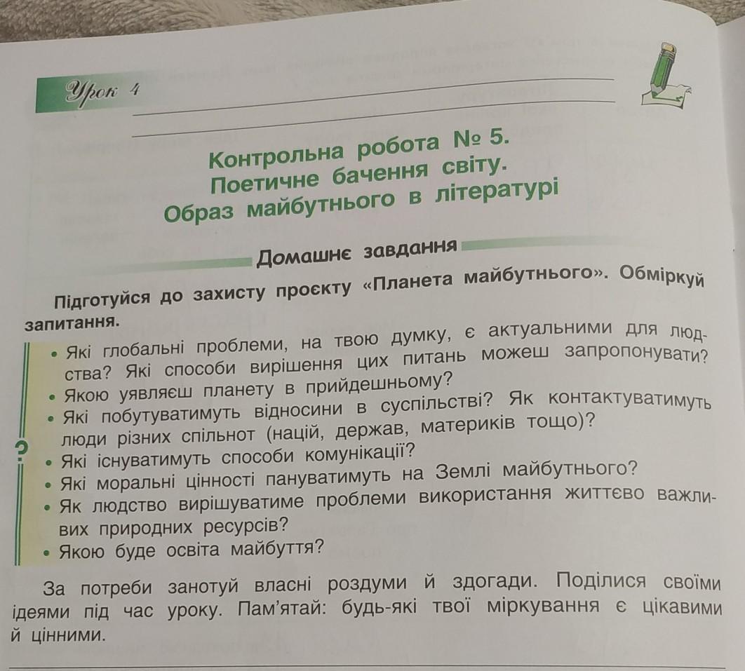 Підготуйся до захисту проекту «Планета майбутнього». Обміркуй