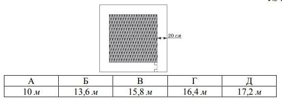 Підлога кімнати має форму квадрата. На ній лежить квадратний килим, кожна сторона якого віддалена від найближчої стіни кімнати на 20 см (див. рисунок). Визначте периметр килима, якщо периметр підлоги дорівнює 18 м