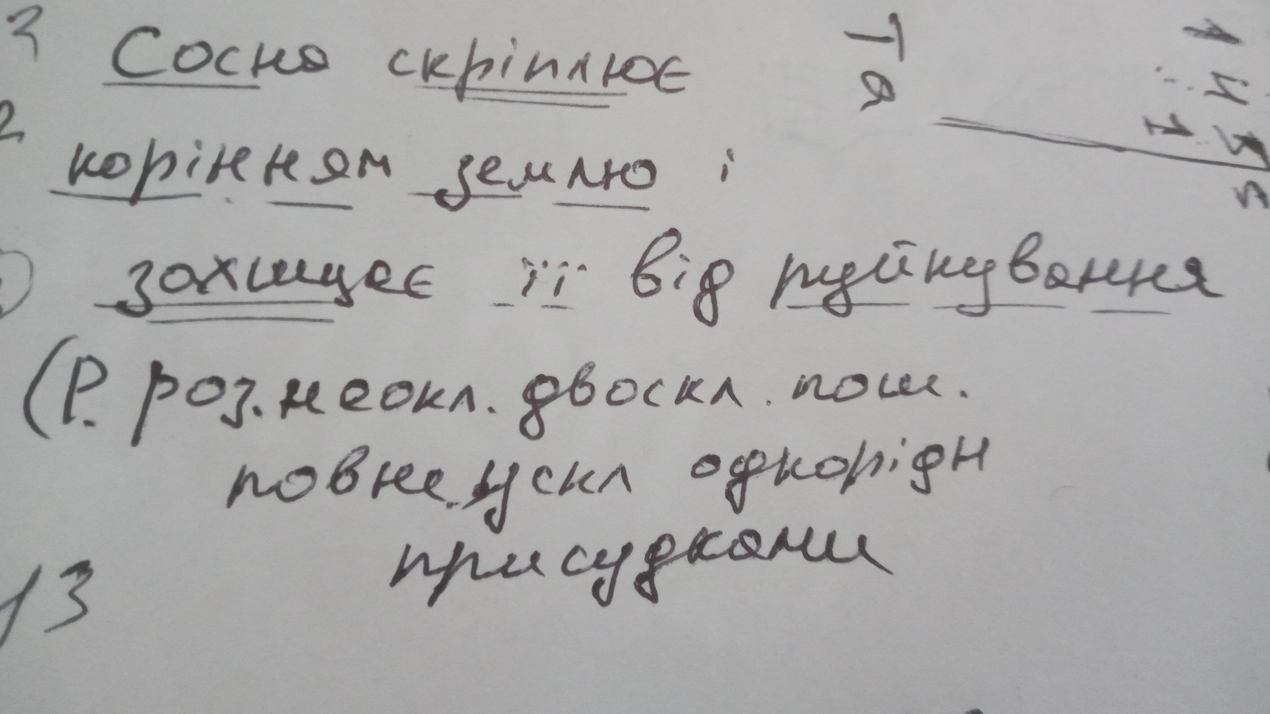 синтаксичний розбір речення сосна скріплює корінням землю і захищає її від руйнування