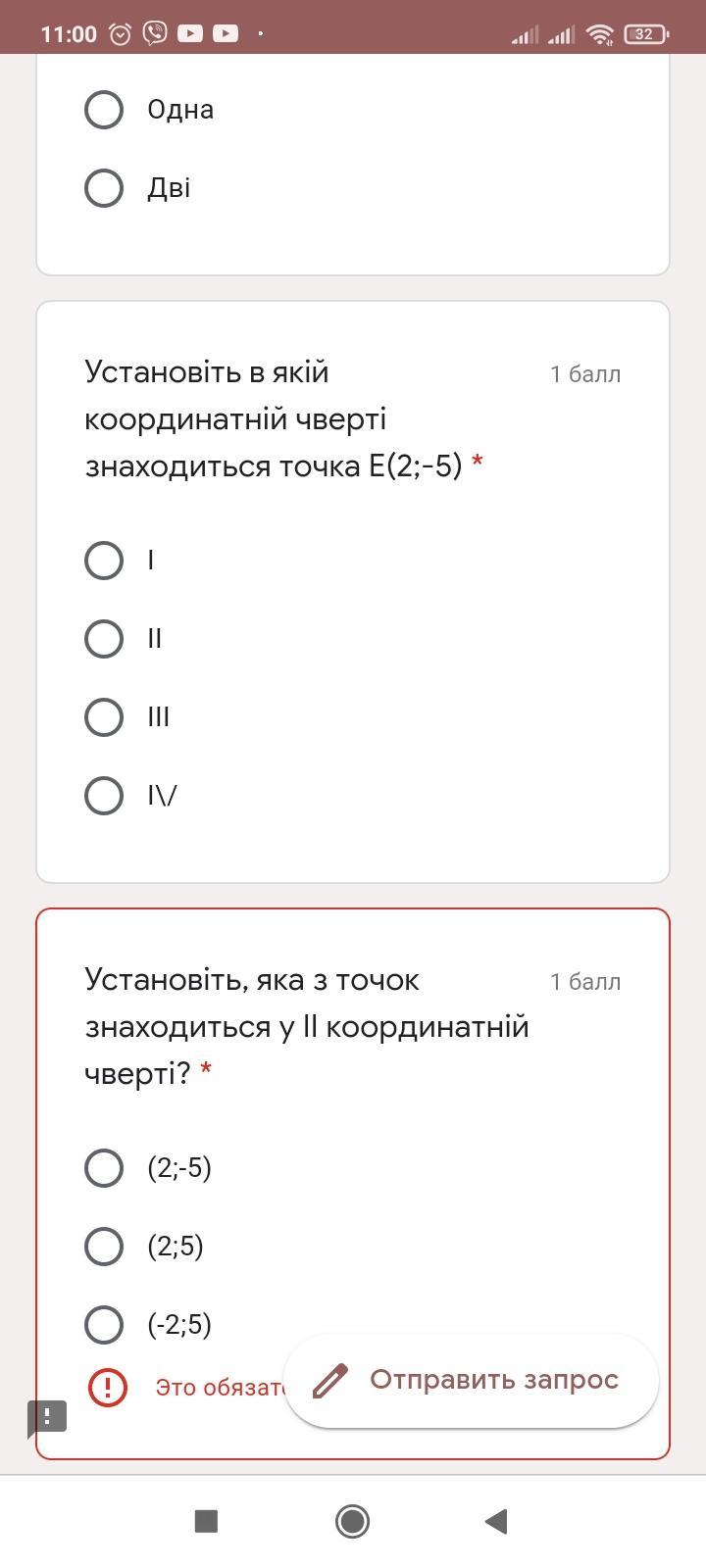Во второй четверти находиться точка (-2;5)