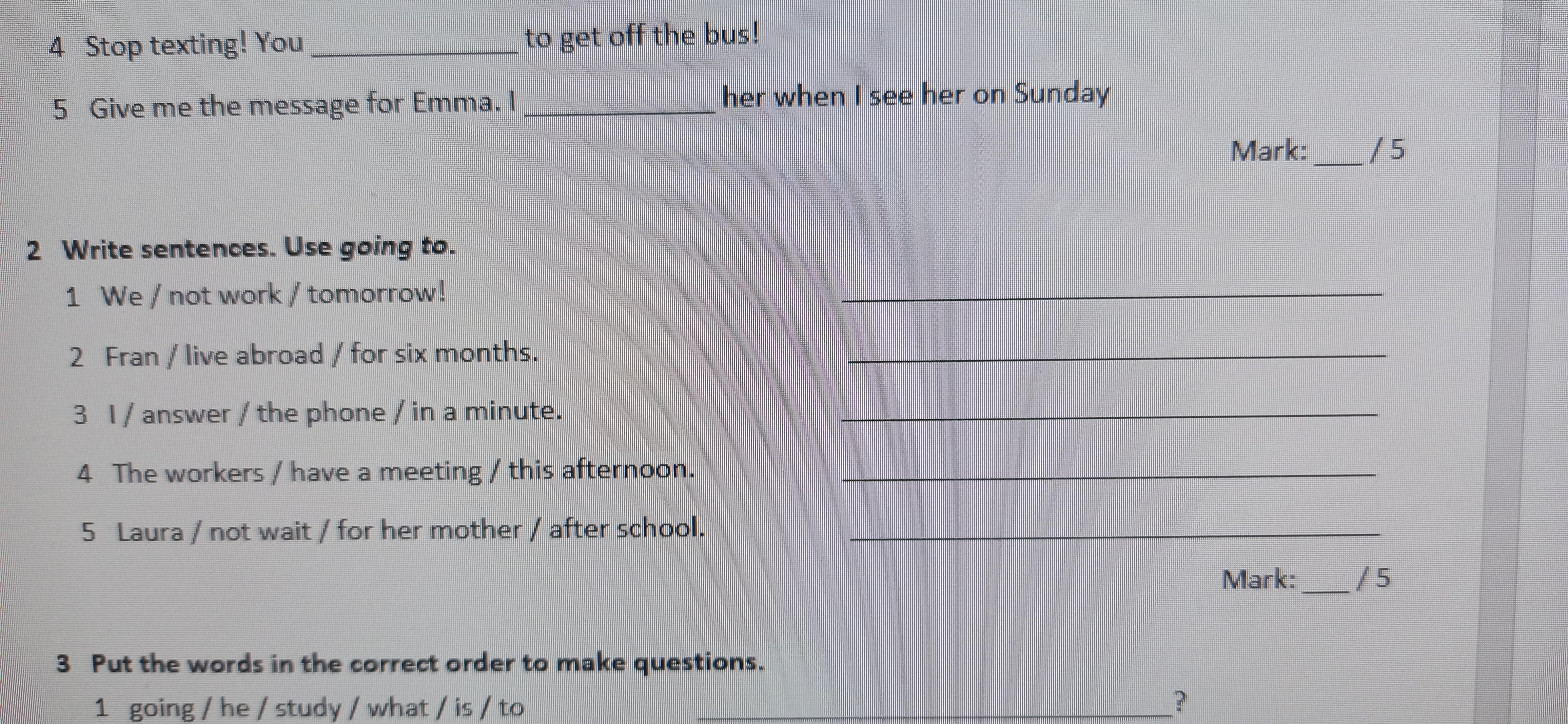 5)I will tell her when see her on Sunday