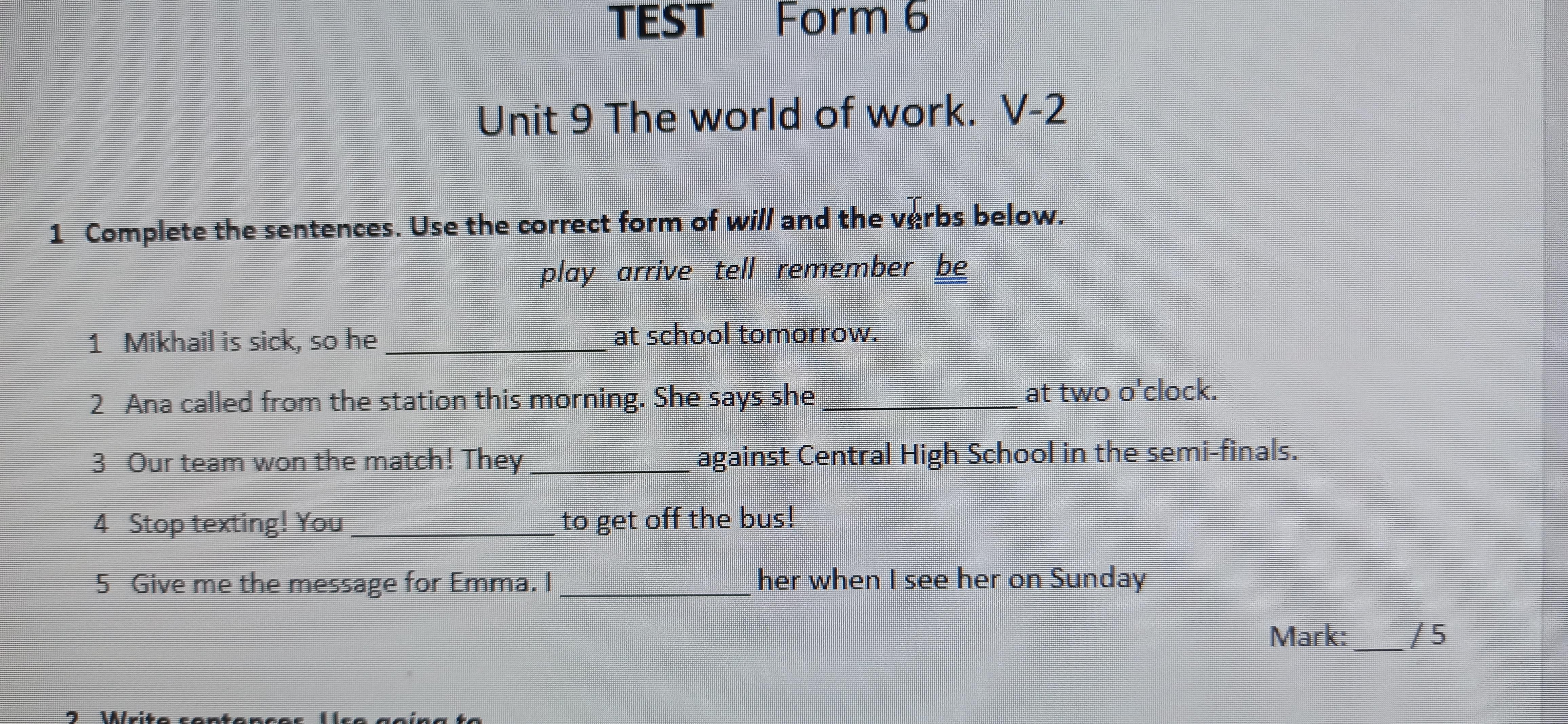 1)Mikhail sick, so he won’t be at school tomorrow