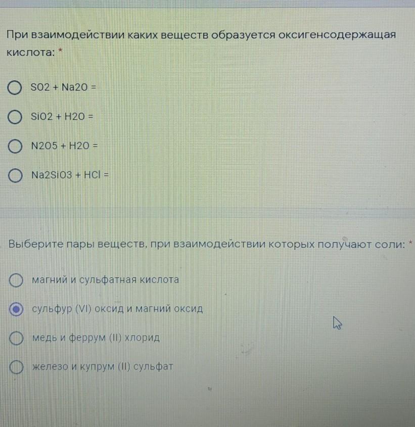 При взаимодействии каких веществ образуется оксигенсодержащая