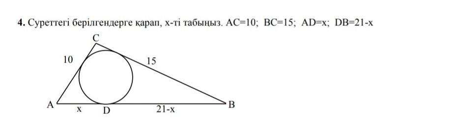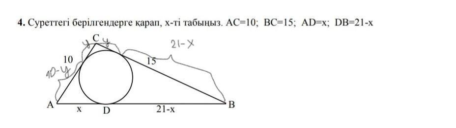 Так как касательные из одной точки к окружности равны, то обозначим маленькие верхние касательные за y, далее смотри рисунок.