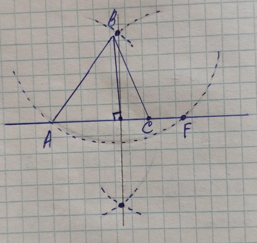 1)проводим из точки В радиус АВ.Далее ставим точку F.