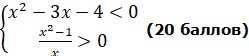 Первая система уравнений не дает результатов поэтому берем результаты из второй x⊂(-1,4)