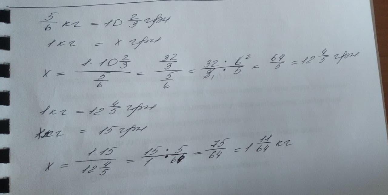 за 5/6 кг риби заплатили 10 2/3 грн. Скільки коштує 1кг риби ? Скільки риби можна купити на 15 грн? СРОЧНО!!! ДАЮ 35 БАЛОВ!