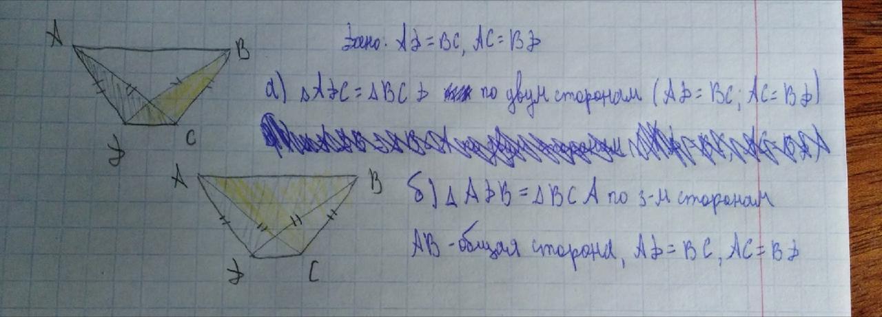 а) ADB=BCD по 3-м сторонам (я допустила ошибку в решении, прошу прощения)