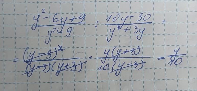 (y-3)/(y+3) * y(y+3)/10(y-3) = y/10 = 0,1y.
