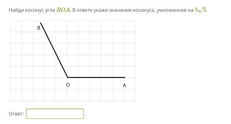 Найди косинус угла BOA. В ответе укажи значение косинуса, умноженное на 55–√.