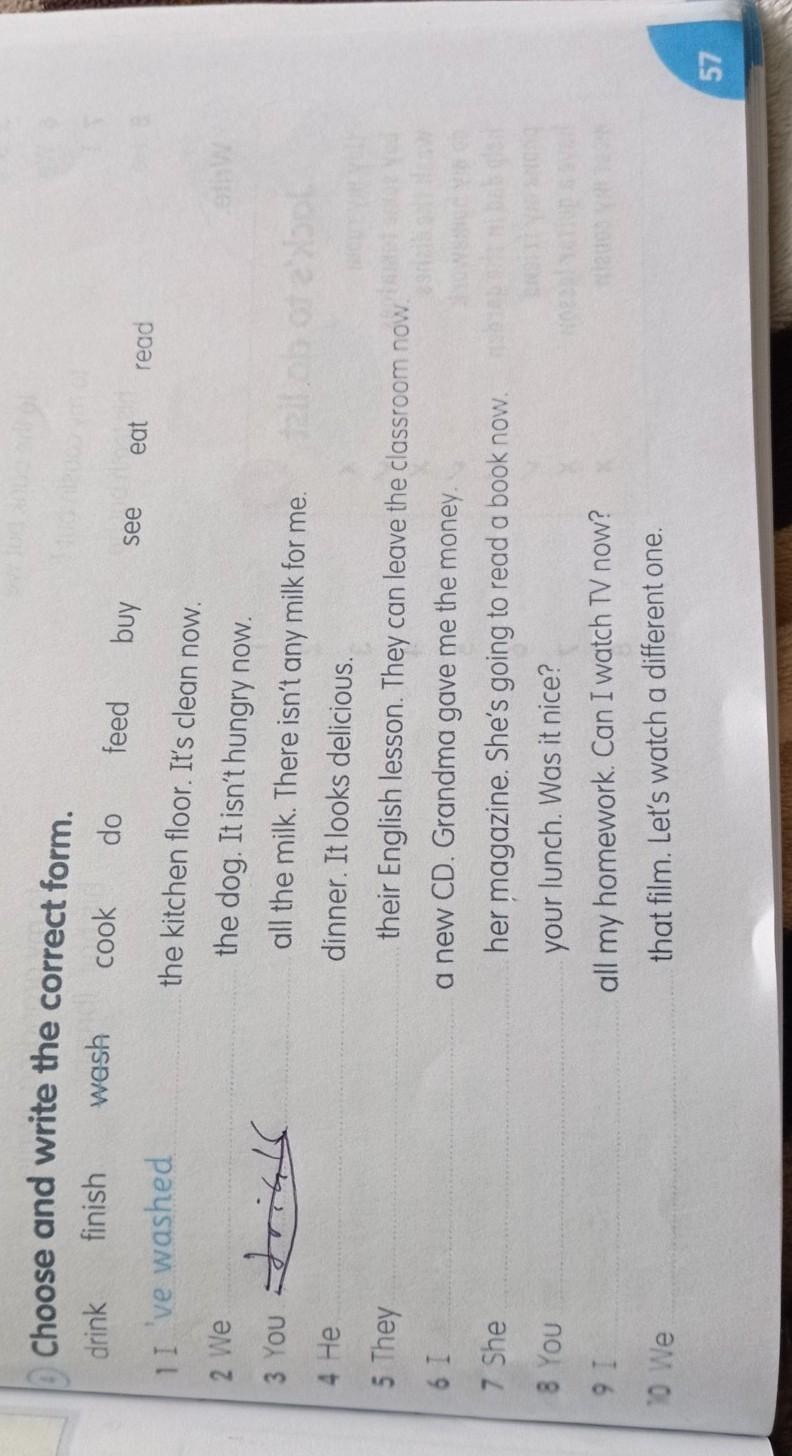 2. have fed 3. have drunk 4. has cooked 5. have finished 6. have bought 7. has read 8. have eaten 9. have done 10. have seen