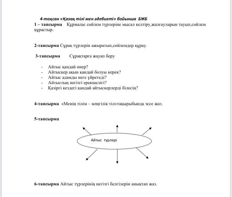 4-тапсырма «Менің тілім – мәңгілік тіл»тақырыбында эссе жаз. 5-тапсырма