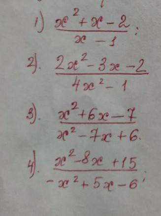 4) x^2+6x-7/-x^2+5x-6 = 1-8x+15/-1+5x-6 = -8x+16/5x-7 = извини, дальше не могу