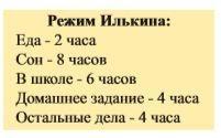 Надо построить круговую диаграмму,показывающую режим дня ( 24 часа) Илькина. Сколько градусов будет составлять сектор указывающий сколько времени Илькин тратит на еду?