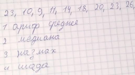23.10.9.11.14.18.20.23.26.23. 1 ариф среднее 2 медиана 3 назмах 4 шада
