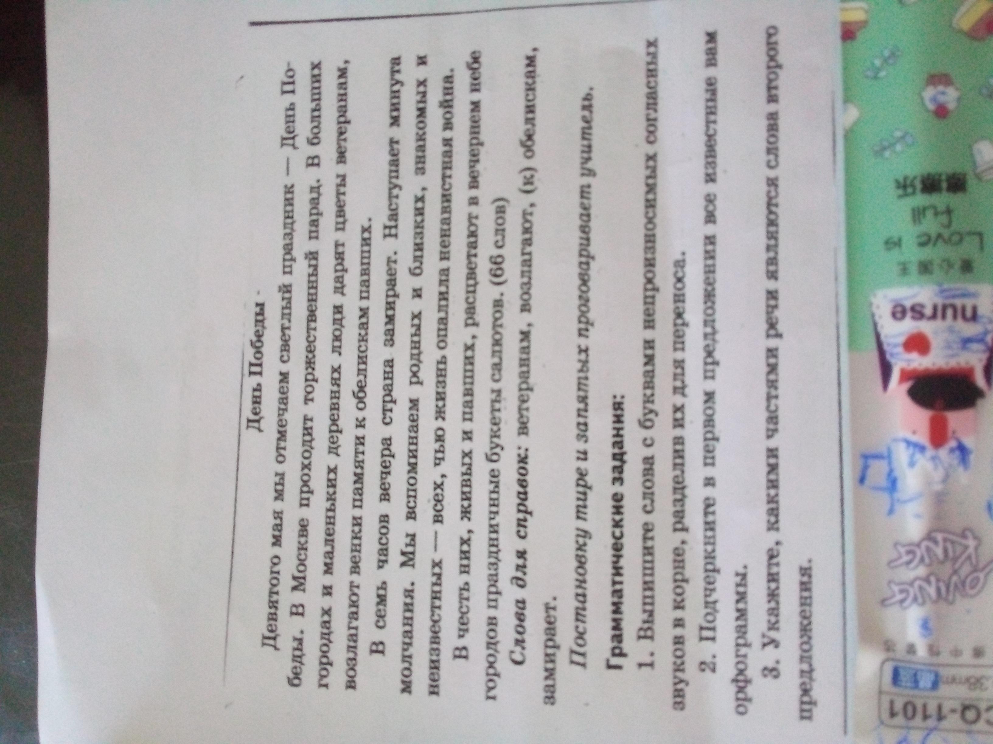 3. В(предлог) Москве(сущ.) проходит(глагол) торжественный(прилаг.) парад(сущ.).