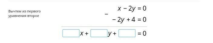 -\left \{ {{x-2y=0} \atop {-2y+4=0}} \right.\\------\\\boxed1 \ x+\boxed0 \ y +\boxed{-4}=0
