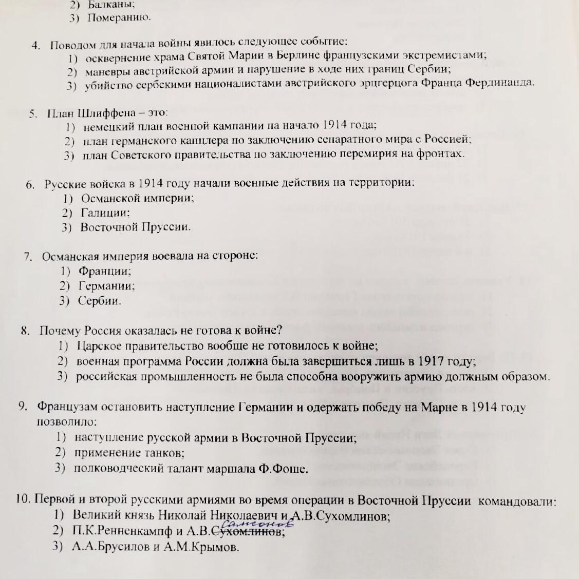 (2 часть теста по истории Первая Мировая война, 1 часть в профиле).