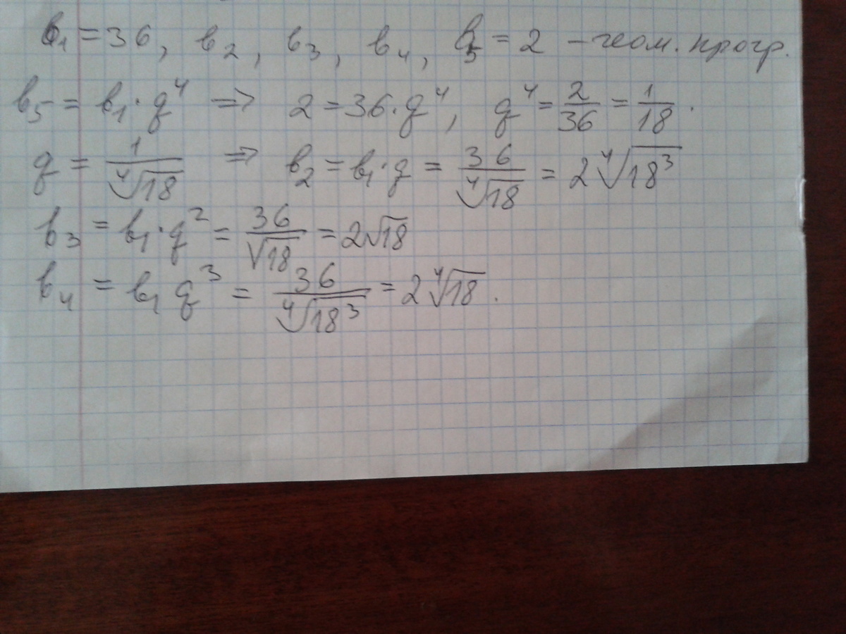 Между числами 36 и 2 вставьте три числа так, чтобы вместе с данными числами они составили геометрическую прогрессию.