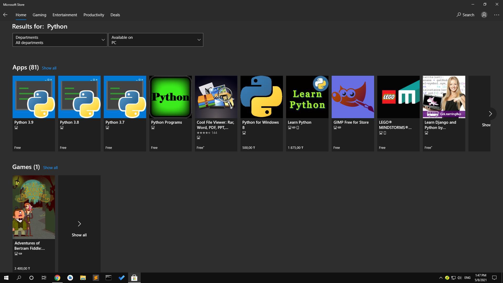 Во вложении картинка с версиями питон в майкрософт магазине и скрин командной строки с удачной установкой