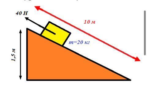 На рисунке с помощью наклонной плоскости подняли массу M на высоту һ.