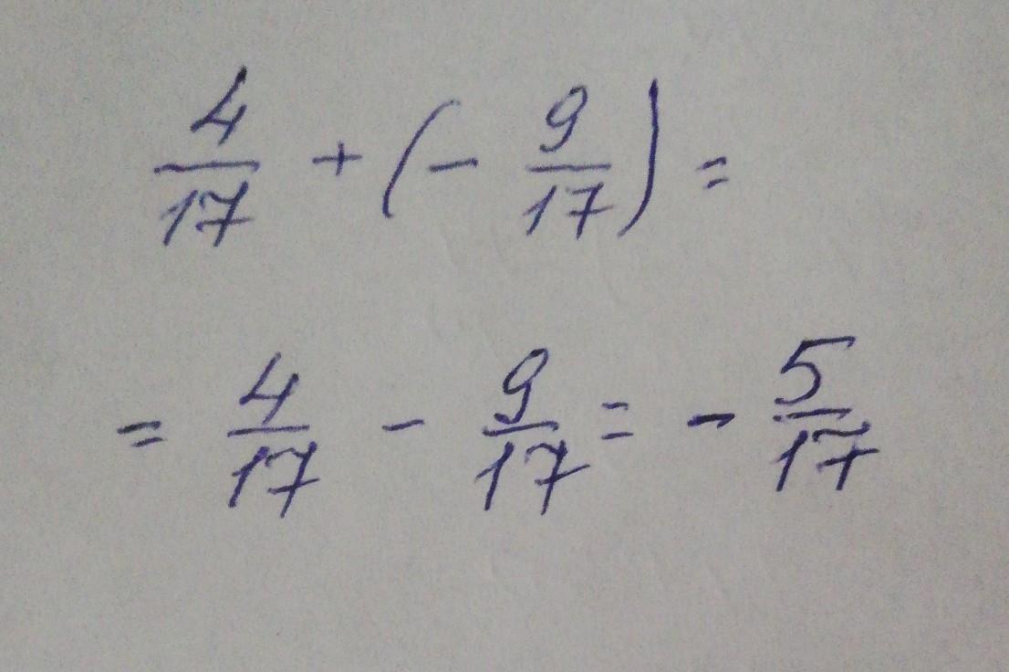 вычислить в первое окошко впиши знак минус Если результат отрицательный и плюс Если результат положительный: 4/17+(-9/17)=