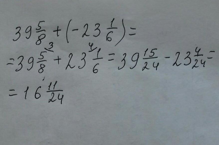 39 5/8 -23 1/6= 312/8-138/6 =936/24-552/24=384/24=16