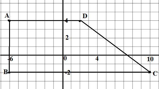 4.Точки A(-6; 4), B(-6; -2), C(10; 2), D(2; 4) вершины прямоугольной