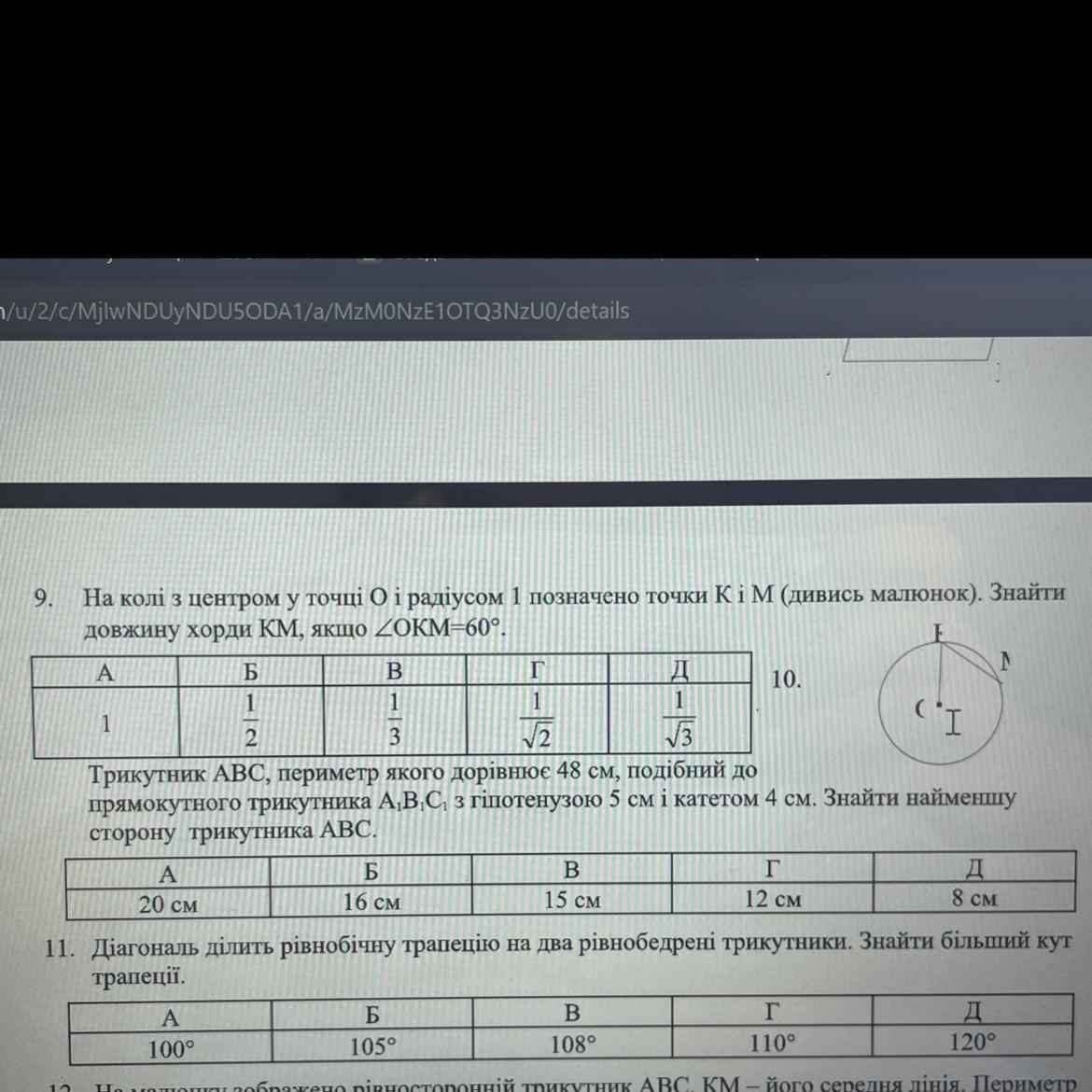 Длина окружности 2πR, Тогда КМ =2π*1/6=π/3≅1