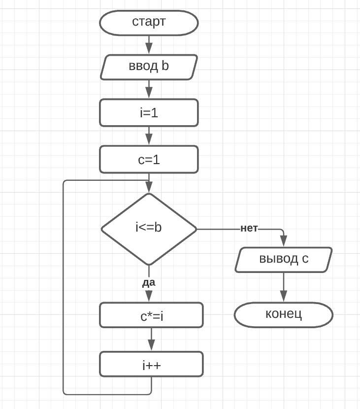 Произведение всех целых чисел от 1 до b (значение b вводится с клавиатуры; 1<= b<= 20);