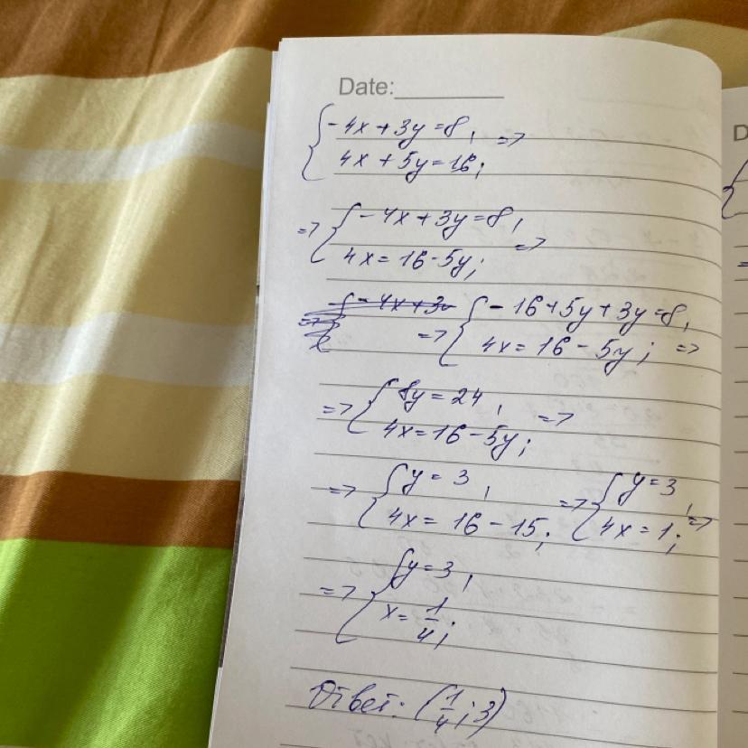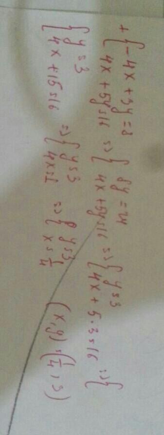 используется метод сложения: избавились от 4x, в итоге остается y. Подставляем ответ y во второе уравнение и получаем ответ