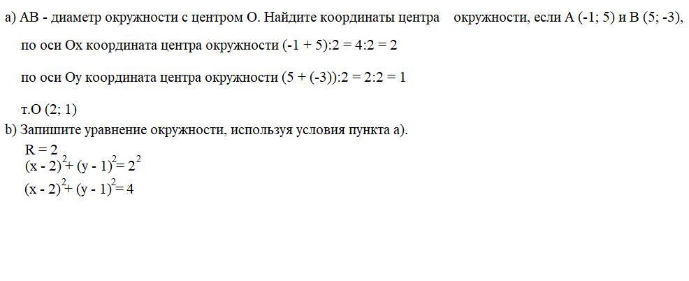 2. a) AB - диаметр окружности с центром О. Найдите координаты центра